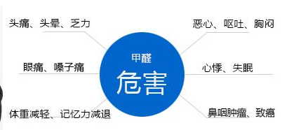 當甲醛濃度達到0.08~0.09mg每立方米空氣時,兒童會出現輕度哮喘;當室內空氣達到0.1mg/m時,會出現氣味和不適。當它達到0.5毫克,它可以刺激眼睛,引起眼淚,它達到0.6mg米,并會導致咽喉和喉嚨不適或疼痛。長期暴露于低劑量甲醛會導致慢性呼吸道疾病、記憶障礙、畸形和癌癥。
